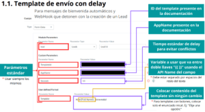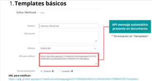 • Accede a configuración de templates → Selecciona “Nuevo Template Básico” → Define el mensaje y el tiempo de envío (en tiempo real o con delay)→ Guarda.